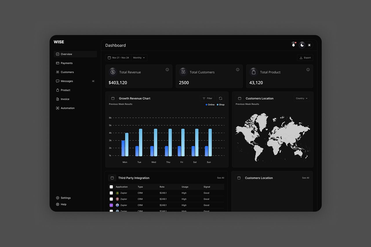 The web app is built with reusable components from our design system. It includes bar charts, vector maps, and responsive tables for a seamless experience.