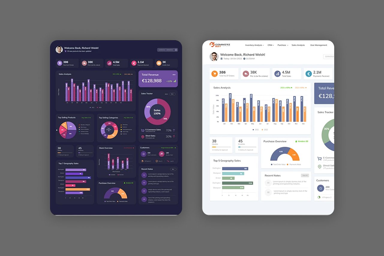 The e-commerce dashboard is built with reusable components from our design system. It includes responsive tables and streamlined form elements for efficient management.